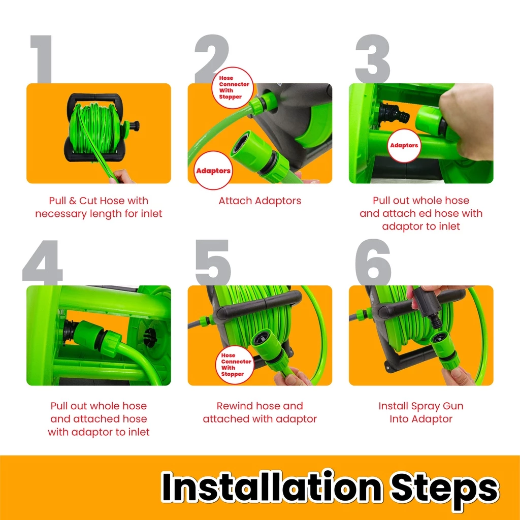 - Capable of storing 10-20 Meter (1/2" or 13mm) hose.